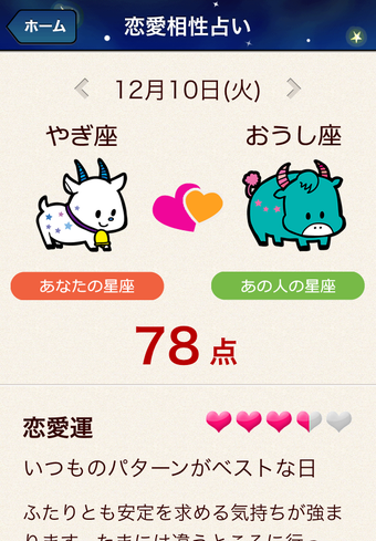 星座別の今日の運勢や恋愛運、心理テストまで楽しめる占いアプリ